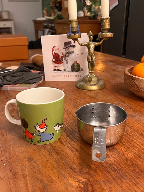 I have used cup measurements here because I have a set of them. A cup is 250ml or a Moomin mug full.