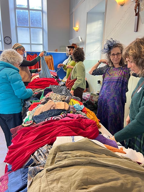 Generalissimo Natalie got the ball rolling some time back and we accumulated an astonishing quantity of fantastic second hand clothing, filling every nook and cranny of outhouses and spare rooms - sorted, tagged, bagged and market ready.